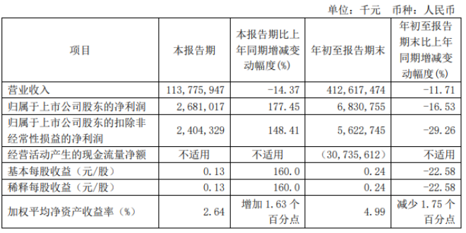 報告中顯示,2024年三季度,中國中冶實現營業收入1137.76億元,同比下降14.37%;歸屬於上市公司股東的淨利潤26.81億元,同比增長177.45%。