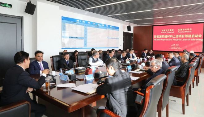 中國東方集團董事局主席兼首席執行官韓敬遠,安米集團副總裁、中國區首席執行官桑傑·沙瑪出席,並分別代表軟磁材料項目執委會講話;中國東方集團執行董事朱軍,代表執委會傳達《關於成立新能源軟磁材料上遊項目籌建委員會及人員任命的通知》;上遊項目籌建委員會副主任埃萬德羅·德·菲格雷多·內托,上遊項目籌建委員會項目總監於利峰分別表態發言;上遊籌建委員會主任、中國東方集團執行董事兼首席財務官韓力主持啟動會。安米集團、中國東方執委會及籌委會相關人員參加啟動會。