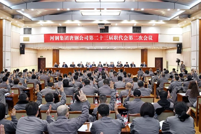 2023年,在唐鋼公司職代會上,職工代表表決通過大會決議。