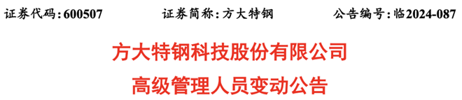 12月7日,方大特鋼科技股份有限公司(以下簡稱“公司”)發布《高級管理人員變動公告》(以下簡稱《公告二》)。