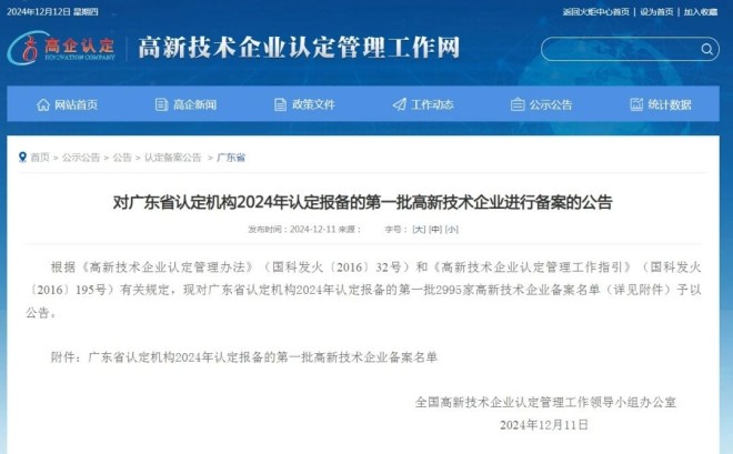 12月11日,全國高新技術企業認定管理工作領導小組辦公室發布廣東省認定機構2024年認定報備的第一批高新技術企業備案名單。津西集團子公司、廣東省專精特新中小企業——佛山津西金蘭冷軋板有限公司獲評“國家高新技術企業”。