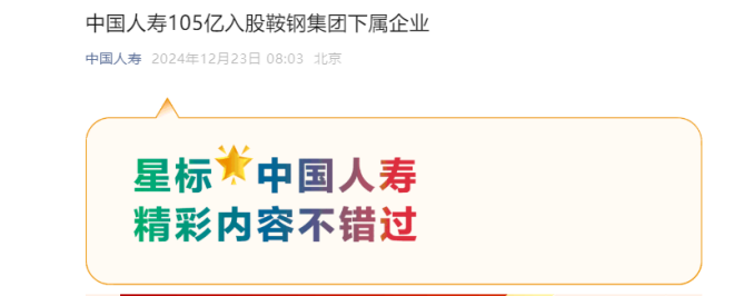 中國人壽105億入股鞍鋼集團下屬企業