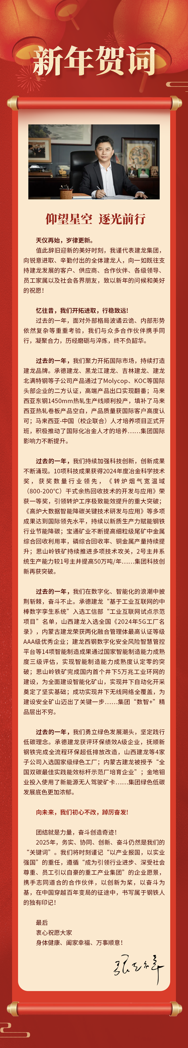 新年賀詞 | 建龍集團董事長張誌祥:仰望星空 逐光前行