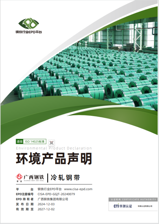 2024年12月,廣西柳州鋼鐵集團有限公司(以下簡稱柳鋼集團)首次在中國鋼鐵行業EPD平台成功發布柳鋼集團冷軋鋼帶產品、柳鋼股份熱軋鋼筋產品、廣西鋼鐵冷軋鋼帶和熱軋鋼筋產品共計4份環境產品聲明EPD報告,成為廣西首家發布環境產品聲明EPD報告的鋼鐵企業。