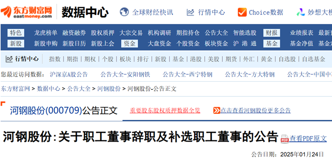 1月24日,河鋼股份發布了《關於職工董事辭職及補選職工董事的公告》。