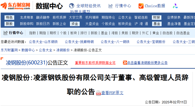2月11日,淩鋼股份發布了《淩源鋼鐵股份有限公司關於董事、高級管理人員辭職的公告》。