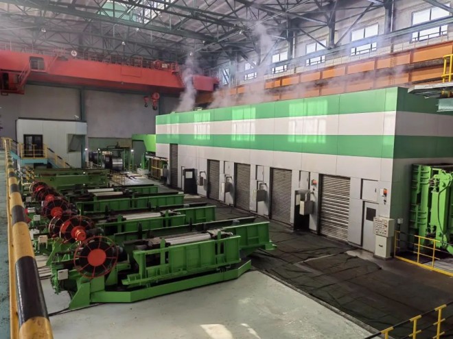 快速交付:邯鋼三冷軋連續退火機組12.5個月建成,刷新國內同類項目工期紀錄。大型國企產線裝備全國產化的首次嚐試,配置高效電解清洗、噴氣快速冷卻、大軋製力平整、新式拉矯、高精度切邊,餘熱多級換熱係統、退火爐二級控製係統等先進技術。