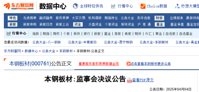 同日,本鋼板材還發布了《監事會決議公告》。