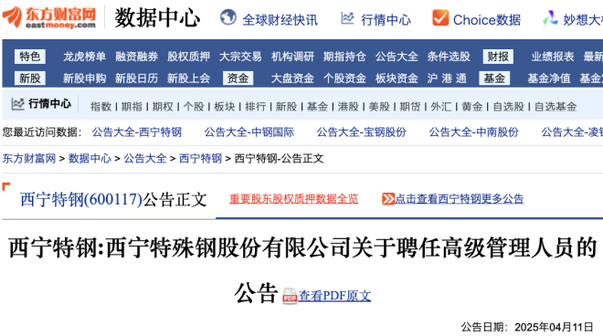 4月11日,西寧特鋼發布《關於聘任高級管理人員的公告》。