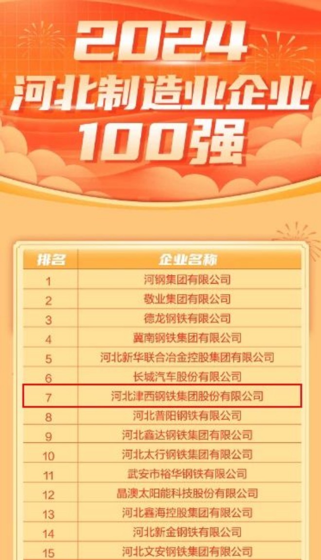 2024年河北省百強企業榜、製造業和服務業榜,津西股份、津西國貿上榜