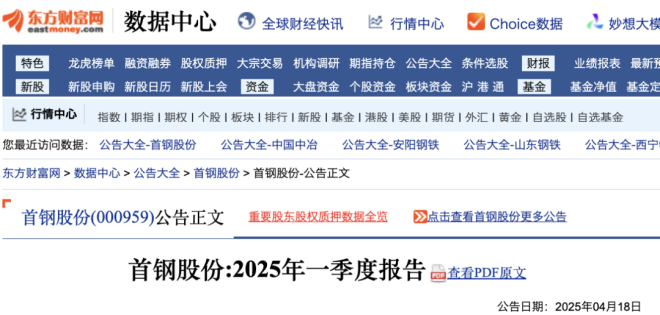 4月18日,首鋼股份公布《2025年一季度報告》。