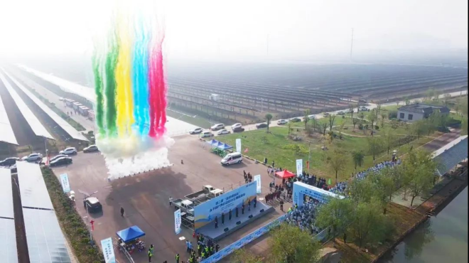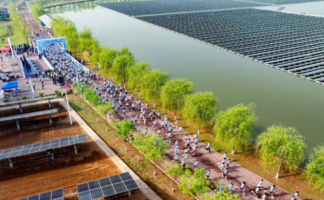 太(tai)子(zi)湖(hu)畔(pan)春(chun)柳(liu)垂(chui)絛(tao),碧(bi)波(bo)瀲(lian)灩(yan),湖(hu)畔(pan)光(guang)伏(fu)矩(ju)陣(zhen)如(ru)銀(yin)色(se)鎧(kai)甲(jia)整(zheng)齊(qi)排(pai)列(lie),在(zai)陽(yang)光(guang)下(xia)熠(yi)熠(yi)生(sheng)輝(hui),正(zheng)將(jiang)清(qing)潔(jie)能(neng)源(yuan)源(yuan)源(yuan)輸(shu)送(song)至(zhi)晉(jin)南(nan)鋼(gang)鐵(tie)的(de)綠(lv)色(se)生(sheng)產(chan)體(ti)係(xi)。在(zai)這(zhe)方(fang)水(shui)天(tian)相(xiang)接(jie)的(de)生(sheng)態(tai)畫(hua)卷(juan)中(zhong),500餘名中外跑步愛好者齊聚一堂,共赴一場速度與激情的春日之約。