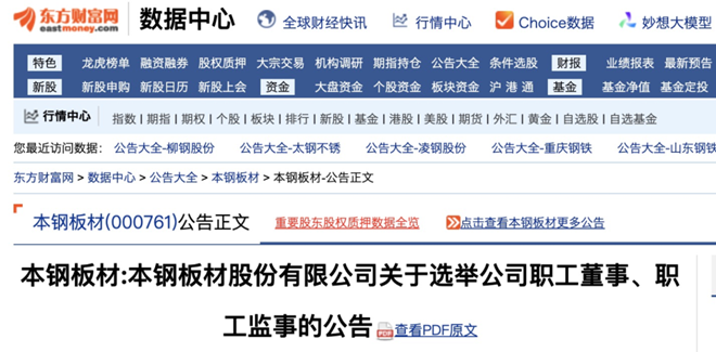 4月23日,本鋼板材發布了《本鋼板材股份有限公司關於選舉公司職工董事、職工監事的公告》。