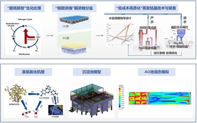 麵對水質難題以及行業痛點,中冶南方項目團隊經長期調研分析,依托公司深厚的技術積澱,確定了鋼鐵行業首創的零排放工藝路線:基於 “超低排放” 生化處理+“極致濃縮” 膜濃縮分鹽+“低成本高質化” 蒸發結晶,並應用了高效生物脫氮及耦合除硬技術、高密度智能除硬技術、O3-WISBAF 智效耦合調控係統等多項專有技術,實現穩定運行、水質達標、節能降耗三大目標。