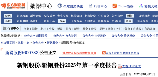 4月26日,新餘鋼鐵股份有限公司(以下簡稱“該公司”)披露2025年第一季度報告。