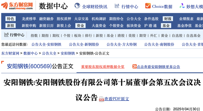 4月30日,安陽鋼鐵股份有限公司(以下簡稱“該公司”)發布第十屆董事會第五次會議決議公告,披露2025年度固定資產投資計劃。