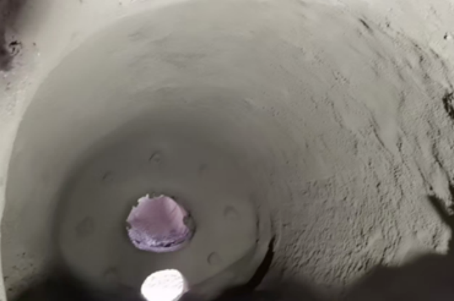 其澆注施工過程如下:舊(jiu)爐(lu)改(gai)造(zao)時(shi),清(qing)理(li)爐(lu)內(nei)舊(jiu)料(liao),打(da)磨(mo)鏽(xiu)蝕(shi)內(nei)壁(bi)。測(ce)量(liang)尺(chi)寸(cun),按(an)設(she)計(ji)要(yao)求(qiu)標(biao)注(zhu)各(ge)部(bu)位(wei)區(qu)域(yu),測(ce)量(liang)並(bing)結(jie)合(he)實(shi)際(ji)標(biao)識(shi)好(hao)錨(mao)固(gu)點(dian)。焊(han)接(jie)錨(mao)固(gu)釘(ding)後(hou),逐(zhu)個(ge)進(jin)行(xing)敲(qiao)擊(ji)驗(yan)收(shou)。按(an)厚(hou)度(du)要(yao)求(qiu)鋪(pu)設(she)或(huo)粘(zhan)貼(tie)納(na)米(mi)板(ban)、耐(nai)火(huo)纖(xian)維(wei)層(ceng),采(cai)用(yong)細(xi)鐵(tie)絲(si)網(wang)或(huo)者(zhe)千(qian)絲(si)將(jiang)纖(xian)維(wei)層(ceng)固(gu)定(ding)牢(lao)固(gu)。按(an)照(zhao)厚(hou)度(du)要(yao)求(qiu)支(zhi)設(she)模(mo)板(ban),驗(yan)收(shou)模(mo)板(ban)尺(chi)寸(cun)和(he)牢(lao)固(gu)性(xing)然(ran)後(hou)再(zai)進(jin)行(xing)澆(jiao)注(zhu)。澆(jiao)注(zhu)時(shi),下(xia)半(ban)圓(yuan)澆(jiao)注(zhu)料(liao)從(cong)模(mo)板(ban)開(kai)口(kou)處(chu)澆(jiao)注(zhu),上(shang)半(ban)圓(yuan)澆(jiao)注(zhu)從(cong)頂(ding)部(bu)預(yu)留(liu)口(kou)處(chu)澆(jiao)注(zhu)。澆(jiao)注(zhu)料(liao)硬(ying)化(hua)後(hou)拆(chai)除(chu)模(mo)板(ban),驗(yan)收(shou)工(gong)作(zuo)層(ceng)內(nei)表(biao)麵(mian)情(qing)況(kuang)。驗(yan)收(shou)合(he)格(ge)後(hou),按(an)保(bao)溫(wen)層(ceng)結(jie)構(gou)依(yi)次(ci)填(tian)充(chong),然(ran)後(hou)焊(han)接(jie)爐(lu)殼(ke)鋼(gang)板(ban)封(feng)閉(bi)澆(jiao)注(zhu)孔(kong)。噴(pen)塗(tu)施(shi)工(gong)過(guo)程(cheng)需(xu)要(yao)按(an)澆(jiao)注(zhu)方(fang)式(shi)焊(han)接(jie)錨(mao)固(gu)和(he)鋪(pu)設(she)保(bao)溫(wen)層(ceng),但(dan)不(bu)需(xu)要(yao)支(zhi)設(she)模(mo)板(ban),可(ke)以(yi)在(zai)保(bao)溫(wen)層(ceng)表(biao)麵(mian)壓(ya)一(yi)層(ceng)龜(gui)甲(jia)網(wang)以(yi)便(bian)噴(pen)塗(tu)附(fu)著(zhe)。然(ran)後(hou)進(jin)行(xing)噴(pen)塗(tu),噴(pen)塗(tu)後(hou)清(qing)理(li)反(fan)彈(dan)料(liao)。需(xu)要(yao)底(di)部(bu)噴(pen)塗(tu)時(shi)應(ying)先(xian)噴(pen)塗(tu)底(di)部(bu),底(di)部(bu)硬(ying)化(hua)後(hou)再(zai)噴(pen)塗(tu)頂(ding)部(bu),不(bu)能(neng)把(ba)頂(ding)部(bu)的(de)反(fan)彈(dan)料(liao)直(zhi)接(jie)鋪(pu)設(she)在(zai)底(di)部(bu)。