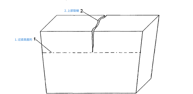 目前撇渣器大多采用預製模塊化設計,采用ASC材(cai)料(liao)體(ti)係(xi)已(yi)成(cheng)共(gong)識(shi),但(dan)是(shi)撇(pie)渣(zha)器(qi)的(de)結(jie)構(gou)化(hua)設(she)計(ji)仍(reng)有(you)許(xu)多(duo)改(gai)進(jin)之(zhi)處(chu)。預(yu)製(zhi)撇(pie)渣(zha)器(qi)過(guo)梁(liang)在(zai)使(shi)用(yong)過(guo)程(cheng)中(zhong)特(te)別(bie)容(rong)易(yi)發(fa)生(sheng)中(zhong)間(jian)縱(zong)向(xiang)開(kai)裂(lie)進(jin)而(er)發(fa)生(sheng)漏(lou)渣(zha)過(guo)渣(zha)問(wen)題(ti)。發(fa)生(sheng)開(kai)裂(lie)的(de)原(yuan)因(yin)主(zhu)要(yao)是(shi)過(guo)梁(liang)的(de)下(xia)部(bu)浸(jin)泡(pao)在(zai)溫(wen)度(du)高(gao)達(da)1450℃左右高溫鐵水中,耐火材料發生較大的熱膨脹,而上部有約1/3~1/5高度則裸在空氣中處於較低溫度,上表麵溫度一般隻有300℃左右,其線性膨脹量顯然遠小於過梁的下部。因此開裂一般從上部開始,一般在除鐵後2~3爐即已經出現,並逐步擴大向下延伸如下圖所示: