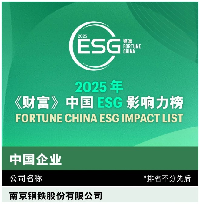 5月16日,2025年《財富》中國ESG影響力榜單揭曉,南鋼股份從近300家參評企業中脫穎而出,連續兩年登榜。本次榜單共有100家企業上榜,南鋼股份是鋼鐵行業唯一上榜企業。