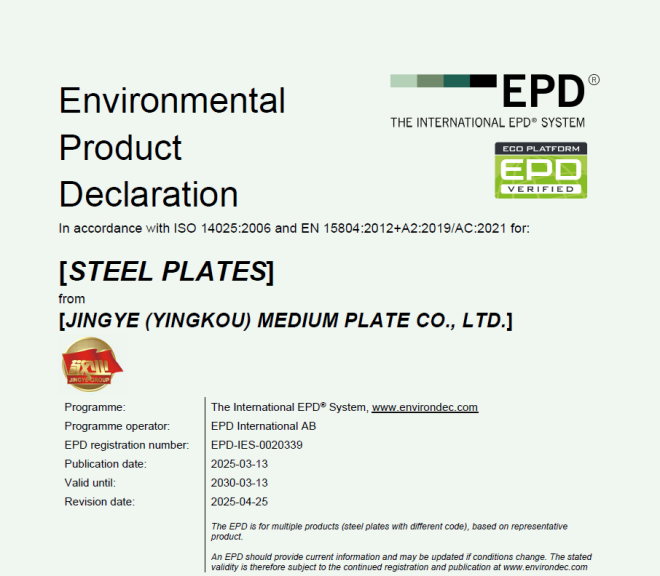 作為國際通用的產品全生命周期環境績效透明化認證,EPD以科學嚴謹的生命周期評估(LCA)方法為基礎,覆蓋原材料、生產、運輸、使用及回收全鏈條。敬業營口中板此次發布的EPD報告,為全球客戶提供了綠色采購依據,也為敬業集團獲得歐美綠色建築項目優先供貨資格提供有力保障。