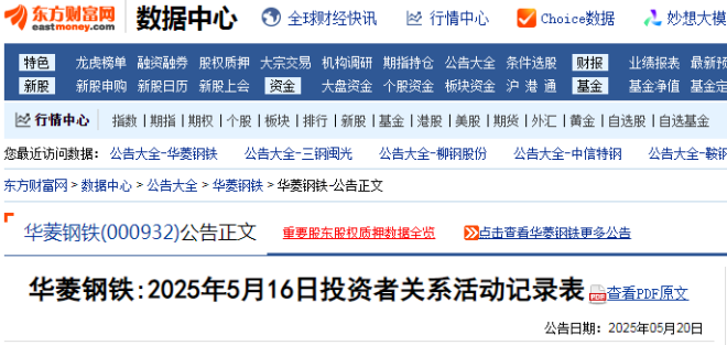 在此之前,華菱鋼鐵於5月20日披露接待公告。