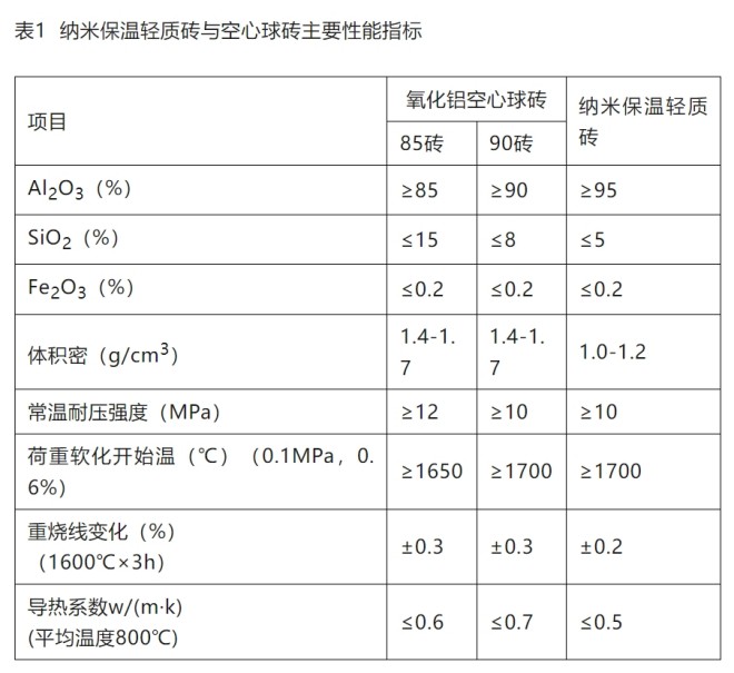 zhenduiyishangqingkuang,beijinglianherongdagongchengcailiaogufenyouxiangongsiyanfashiyongnamiguirongjiaozuoweijieheji,caiyongxilvchengxingfangfa,zhibeichugaoqiangdunamibaowenqingzhizhuan(如圖1),kezhijieyongyugaowenyaoludegongzuobuwei,jiangdiyaoludecailiaoyongliang,tigaoyaoluderexiaolv。kequdaimuqianpubianshiyongdeyanghualvkongxinqiuzhuan,gaicailiaobiyanghualvkongxinqiuzhuantimixiao、強度高,能夠應用於1400~1500℃的高溫環境下,比市場上其他的納米輕質絕熱材料使用溫度高。納米保溫輕質磚與空心球磚主要性能指標見表1。