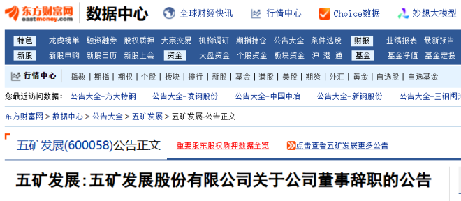 6月28日,五礦發展發布了《五礦發展股份有限公司關於公司董事辭職的公告》。
