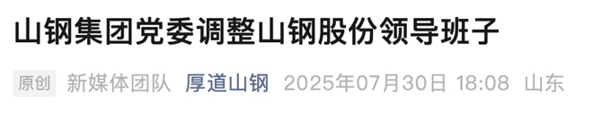 從山鋼微信公眾號獲悉,7月30日,山鋼股份幹部會議召開。山鋼集團黨委副書記、董事、總經理,山鋼股份黨委書記、董事長解旗主持會議,山鋼集團黨委副書記、董事、黨委組織部部長遲明傑宣讀了山鋼集團黨委關於調整山鋼股份領導班子的決定。