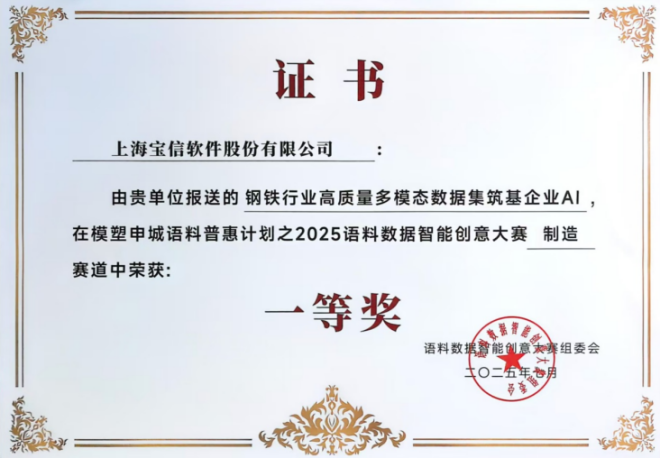 寶信軟件獲2025語料數據智能創意大賽一等獎