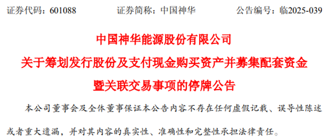 近日,中國神華能源股份有限公司(以下簡稱“中國神華”)發布公告稱,初步考慮擬由公司發行股份及支付現金購買控股股東國家能源投資集團有限責任公司(以下簡稱“國家能源集團”) 持有的煤炭、坑口煤電以及煤製油煤製氣煤化工等相關資產並募集配套資金(以下簡稱“本次交易”或“本次重組”)。公司A股股票自2025年8月4日開市起開始停牌,預計停牌時間不超過10個交易日。