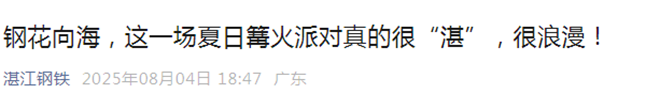 8月4日,湛江鋼鐵公眾號發布了《鋼花向海,這一場夏日篝火派對真的很“湛”,很浪漫!》一文。