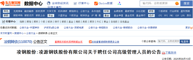8月13日,淩鋼股份發布《淩源鋼鐵股份有限公司關於聘任公司高級管理人員的公告》。