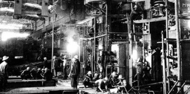 上世紀70年代,工人們正在安裝熱軋廠粗軋機配件。