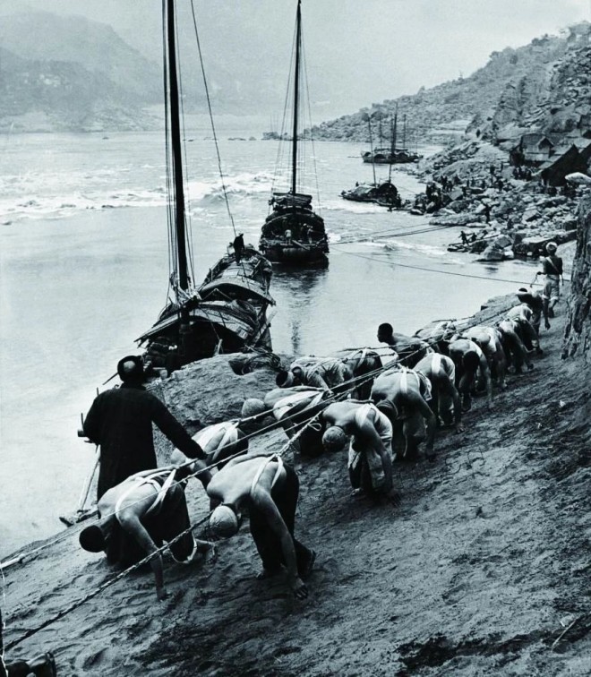 運載工廠器材的小船在川江上艱難跋涉
