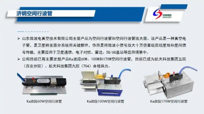 衛星核心部件方麵,作為衛星有效載荷的關鍵核心部件,濟鋼研發的空間行波管可將微波小信號放大十萬倍,廣泛應用於通信衛星、低軌星座、5G/6G基站等重要場景。目前,已建成多頻段柔性生產線,年產能達100支行波管,成功推出Ka55W至Ka170W(寬頻)係列共6款成熟產品,各項性能指標均完全滿足用戶的嚴苛需求,為星地高效信號傳輸築牢關鍵技術支撐。