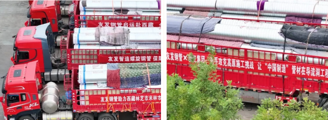 此次首批產品成功啟運,既是雙方精誠合作的成果,也是友發集團"共贏互利信為本、同心並進德為先"核心價值觀的生動實踐。友發通過創新營銷服務模式、深耕高端產品品類、拓展新型產品應用領域,不斷提升服務重大工程的能力,為國家建設事業和西部地區高質量發展貢獻"友發力量"。