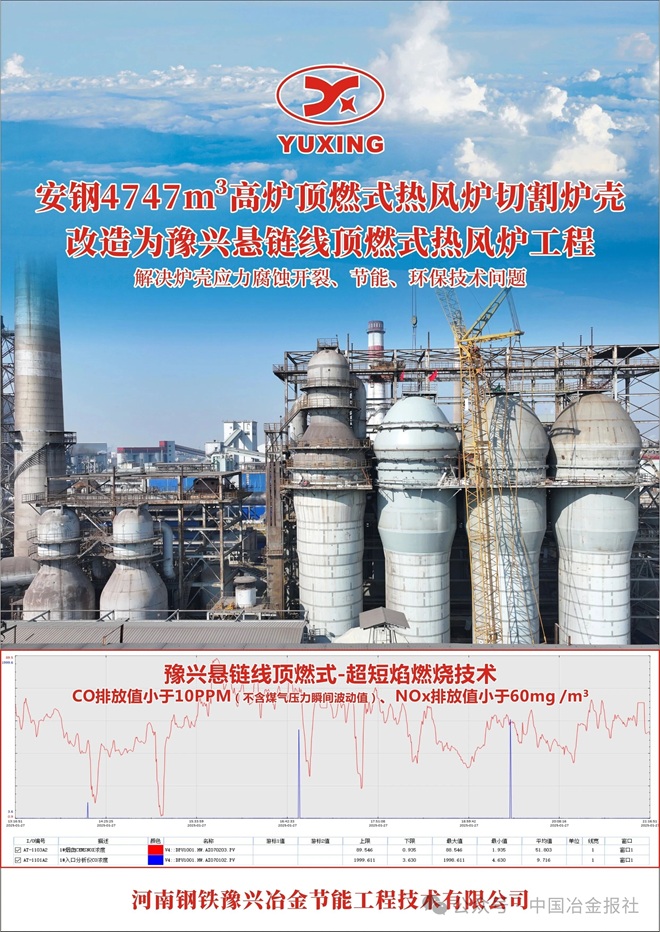 安鋼4747m³高爐小拱頂熱風爐切割爐殼改造為豫興懸鏈線頂燃式熱風爐後優勢凸顯