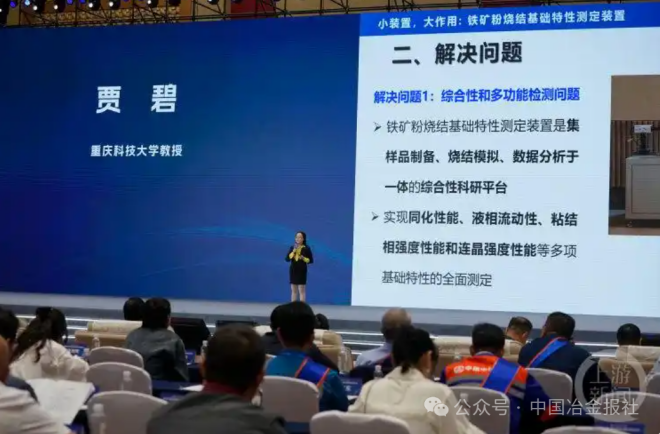 現場,重慶科技大學教授賈碧以《小裝置,大作用:鐵礦粉燒結基礎特性測定裝置》為題,分享了自己創新成果的亮點和特色。