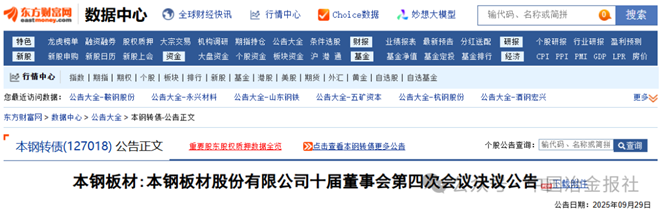 9月29日,本鋼板材發布了《本鋼板材股份有限公司十屆董事會第四次會議決議公告》(以下簡稱《公告》)。