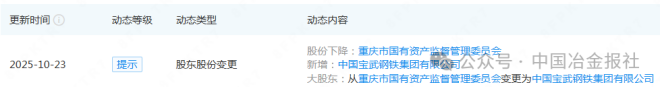 近日,重慶鋼鐵(集團)有限責任公司(簡稱:重鋼集團)完成工商變更,中國寶武鋼鐵集團有限公司(簡稱:中國寶武)認繳出資額約14.86億元,控股90%,正式成為重鋼集團控股股東。此次股權變更前,重鋼集團由重慶市國資委全資控股。