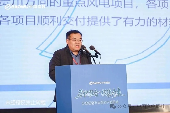 中南鋼鐵副總裁郭玉生圍繞“三基地協同發展”“客戶需求快速響應”“生態圈共建”等理念,作題為《厚積融合、板鑄未來》的主題報告,係統闡釋了中南鋼鐵推動產業鏈融合、實現共贏發展的核心路徑。