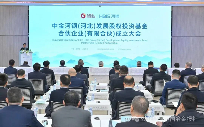 12月25日,中金河鋼(河北)發展股權投資基金成立大會在河鋼研發中心舉行。河北省委常委、常務副省長趙辰昕,河鋼集團黨委書記、董事長劉鍵,中金公司黨委書記、董事長陳亮出席大會共同見證基金成立。儲備子基金代表BlueFive資本集團董事會副主席謝赫·穆巴拉克·阿卜杜拉·穆巴拉克·薩巴赫作表態發言。河鋼集團與中金資本強強聯合設立基金,是雙方布局新賽道、培育新動能的戰略舉措,也是攜手打造產融結合新典範、助力京津冀協同發展的務實行動。該基金總規模320億元、運營期15年。