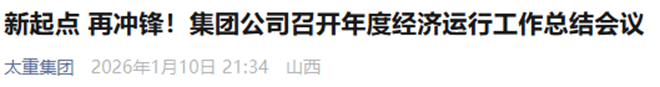 1月10日,太重集團官方微信發布《新起點 再衝鋒!集團公司召開年度經濟運行工作總結會議》一文。