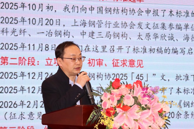 上海鋼管行業協會副秘書長盧致逵在發言中表示,標準是技術創新的重要載體,技術進步是標準升級的堅實基礎,二者相輔相成、密不可分。標準製定既要緊跟技術發展步伐,更要主動引領技術創新方向,為產業高質量發展劃定路線圖、提供硬支撐。他高度肯定激光-電(dian)弧(hu)複(fu)合(he)焊(han)接(jie)技(ji)術(shu)在(zai)鋼(gang)結(jie)構(gou)行(xing)業(ye)的(de)推(tui)廣(guang)價(jia)值(zhi),呼(hu)籲(xu)全(quan)行(xing)業(ye)協(xie)同(tong)發(fa)力(li),共(gong)同(tong)做(zuo)好(hao)標(biao)準(zhun)宣(xuan)貫(guan)與(yu)應(ying)用(yong)推(tui)廣(guang)工(gong)作(zuo),力(li)爭(zheng)在(zai)兩(liang)年(nian)內(nei)推(tui)動(dong)該(gai)項(xiang)團(tuan)體(ti)標(biao)準(zhun)升(sheng)級(ji)為(wei)國(guo)家(jia)標(biao)準(zhun)。