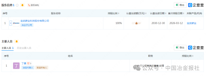 企查查官網顯示,寶武碳業科技(南京)有限公司於2026年3月12日成立,注冊資本為18000萬元,法定代表人為丁康,所屬集團為中國寶武集團。