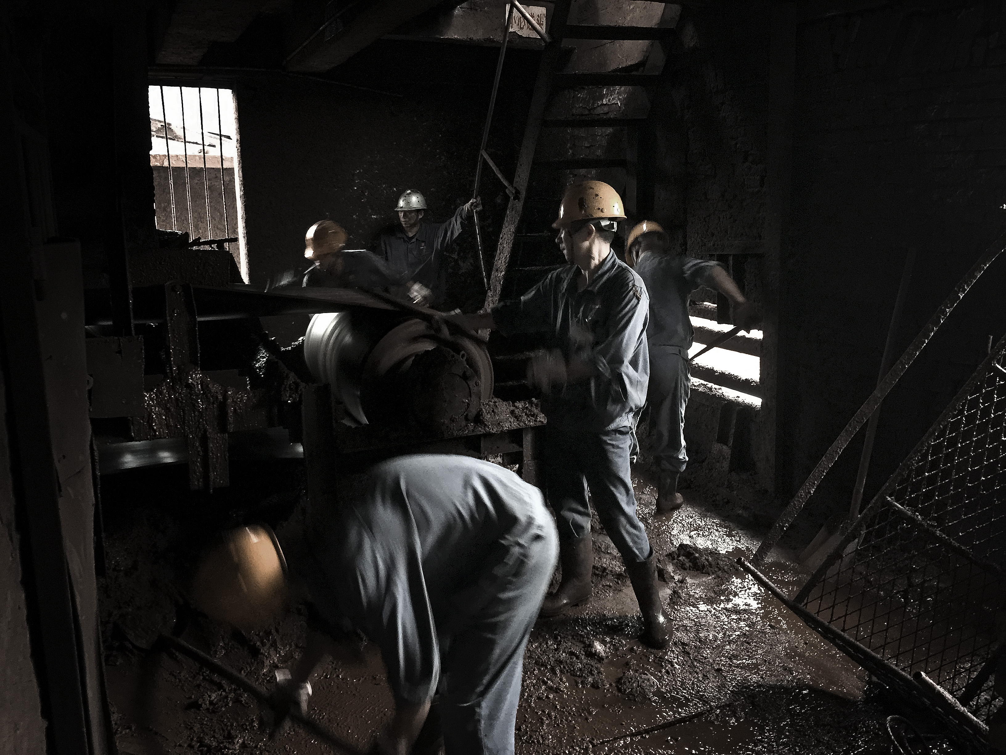 圖1:暴雨後職工集體清掃皮帶漏料