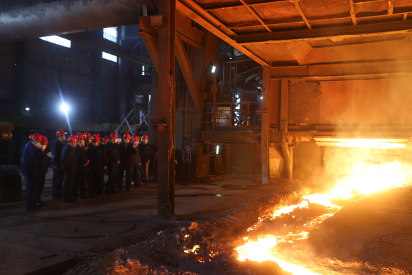 星火照天地,爐前笑臉映紅光。複產出鐵現場掌聲雷動,爐台鞭炮齊鳴,滾滾鐵水從1號高爐東場出鐵口噴湧而出,像一條火龍沿著出鐵場大溝蜿蜒流動。高爐平台上一片歡聲雀躍,每名參檢人員的臉上飛揚著自信的“漢鋼表情”,公司領導、各單位負責人以及參檢人員共同見證了這一振奮人心的時刻。(李偉)