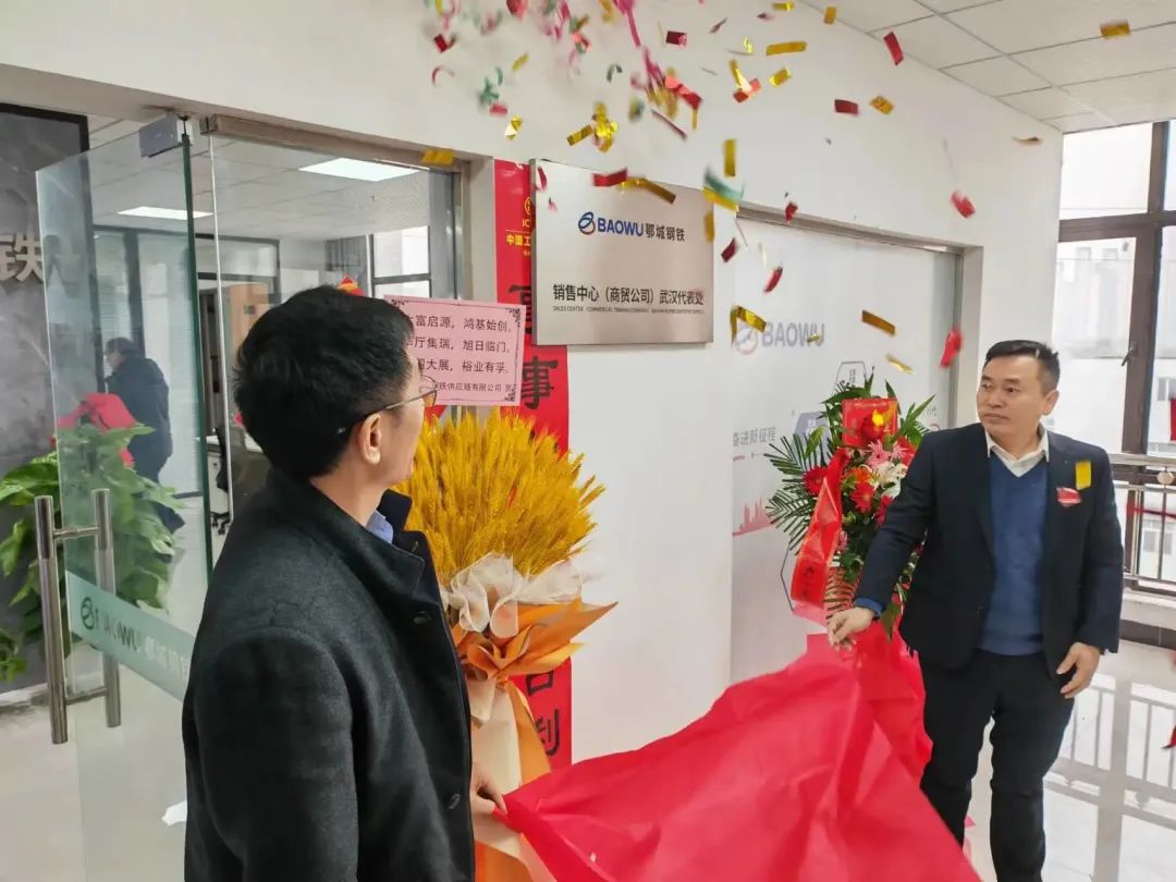 會前,黃大軍為銷售中心(商貿公司)駐武漢代表處揭牌。(胡楊楊/文 李亞非/圖)