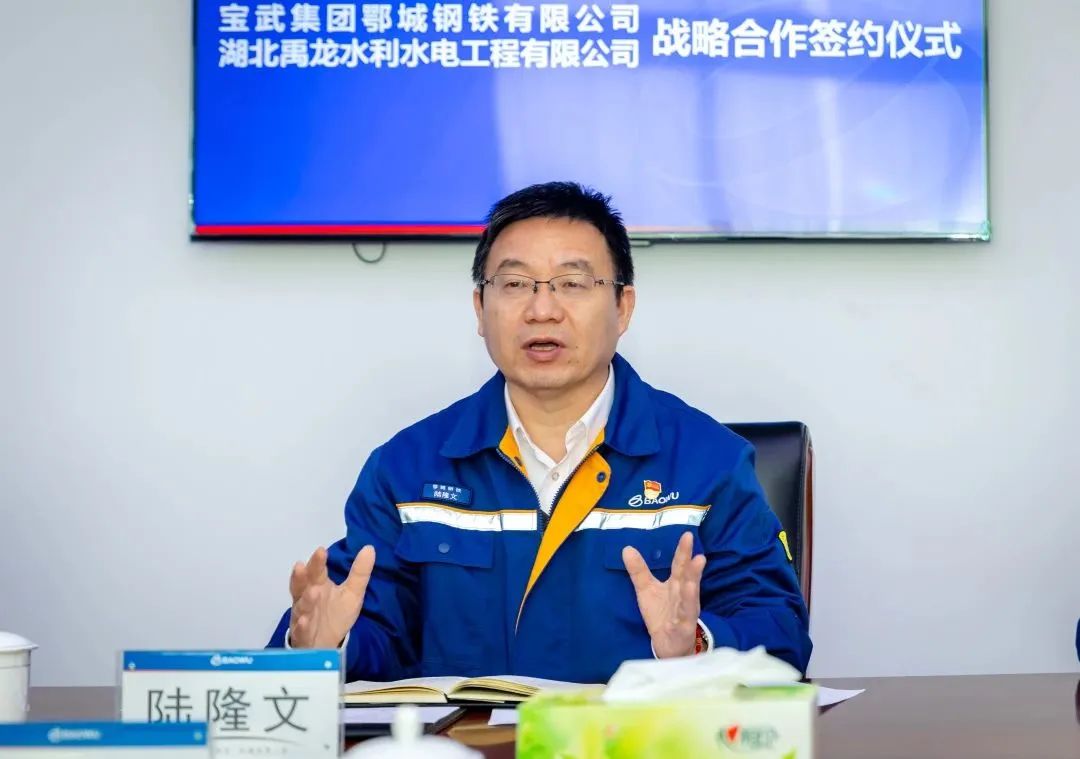 陸隆文對湖北禹龍一行的到訪表示歡迎,並對雙方的深度合作寄予期待。他表示,鄂鋼經過戰略規劃發展,實現了設備大型化和“長材+板材”的升級換代,擁有寬厚板、高速線材、連軋棒材、合金型材等生產線,是華中地區最大的建築用鋼材製造基地、重要的工業用鋼製造基地和新興的高端板材製造基地。“鄂鋼牌”建材廣泛應用於公路、鐵路、房地產等工程項目,板材應用於汽車船舶、海洋平台、水電核電、石油石化、橋梁隧道、機場道路、工程機械等行業。我們與湖北禹龍合作空間巨大、發展空間巨大,期待雙方攜手合作,共同推進湖北水利發展,造福湖北人民。