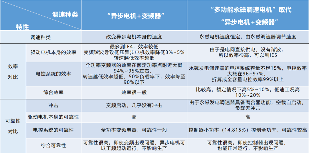 多功能永磁調速電機與變頻異步電機調速效率對比